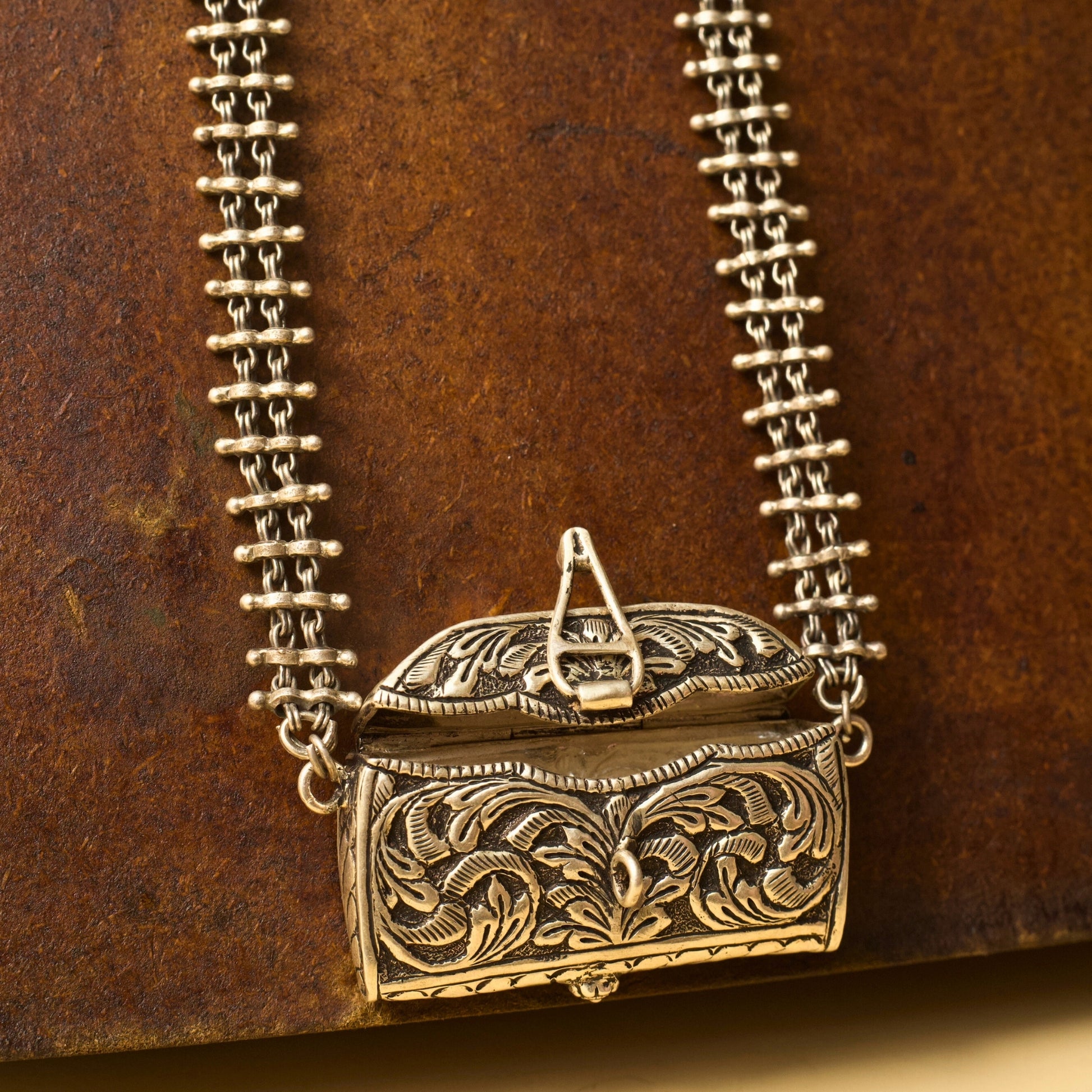 This unique and elegant necklace with a treasure box-shaped locket is a homage to all your precious memories with your beloved women. Crafted with meticulous details the locket opens to reveal a small compartment, ideal for storing tiny keepsakes close to your heart.
